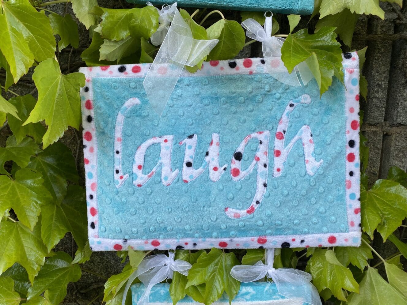 You can follow a similar process to add an Inspirational message to fabric and then attach it to a wood frame. You can then link multiple frames together if desired. These are three of my favorite words … live … laugh…. love. To give you reference points for your project – the live frame is 11” x 9”, the laugh frame is 16” x 11” and the love frame is also 11” x 9”. Base your sizes on the words that you want to put in the frame.